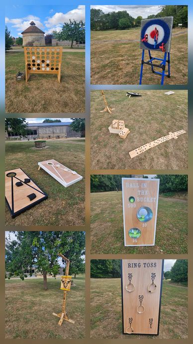 connect 4, axe throwing, dominos, Cornhole, ring toss, ball in a bucket, hook the ring on the bull.